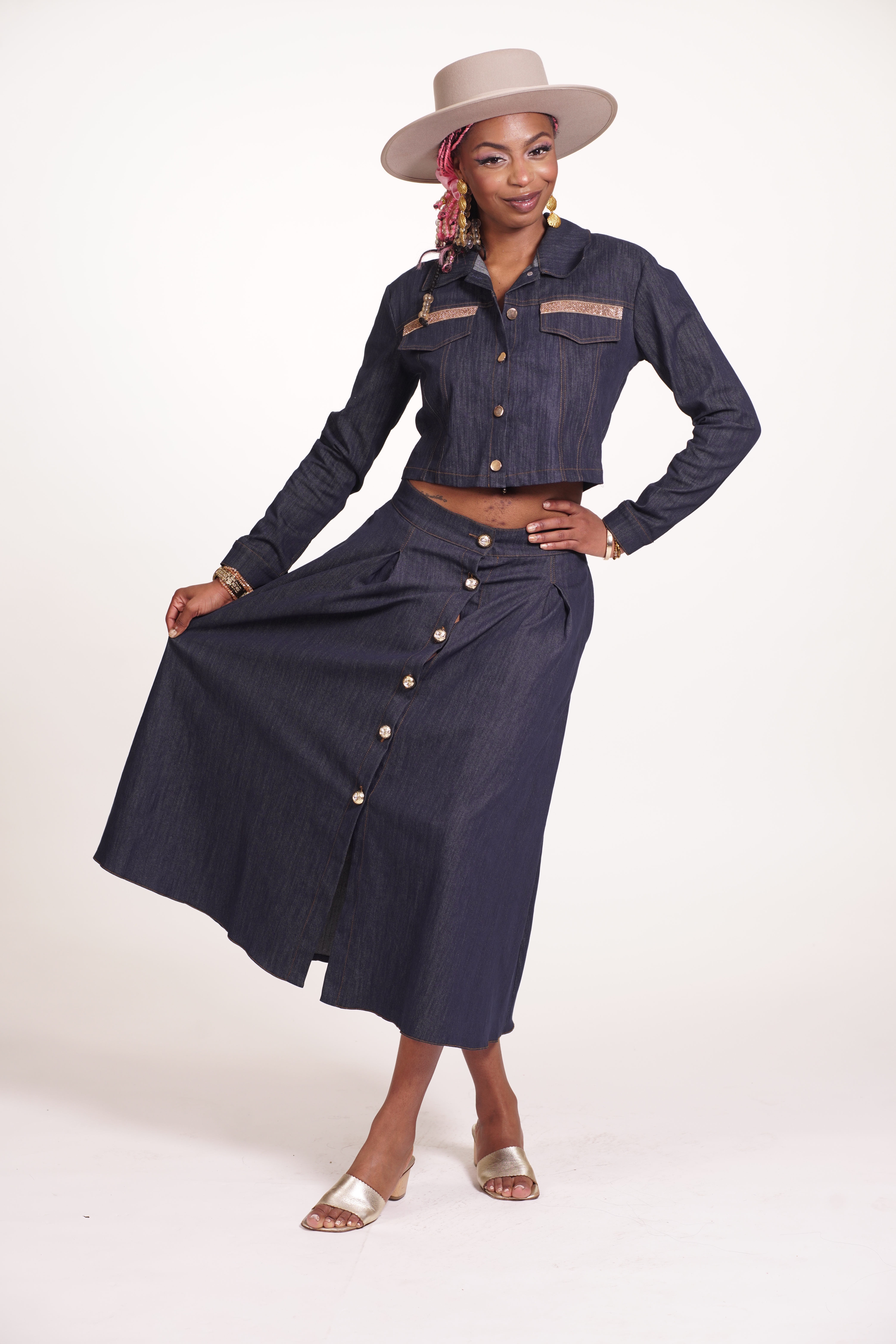 Elevate your closet with this Polka Dot Set crafted with soft cotton and organza to create a sophisticated and voluminious style. This unique and ideal outfit has a peak collar, open back with self-tie bands and flap details to give it a combination of playfulness and luxury.